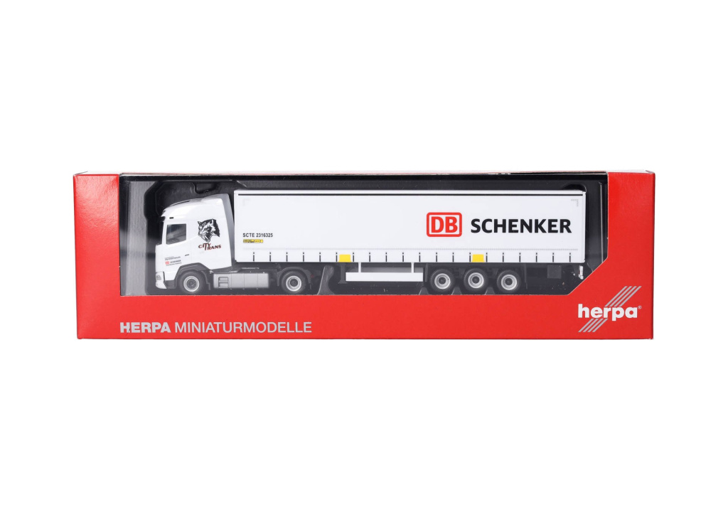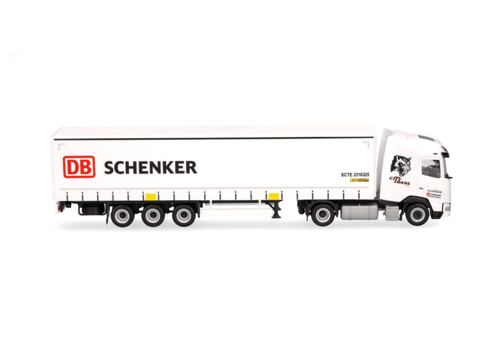 Model dvounápravového tahače DAF XG v barvách společnosti City Trans Harz.Společnost začala v roce 1990 pouze s malým náklaďákem a taxíkem ve Wernigerode. V roce 2021 byla založena City Trans Harz GmbH s flotilou 70 kamionů ve Wernigerode a Magdeburgu.Třínápravový návěs se shrnovací plachtou je s klasickým polepem DB Schenker,se kterou má fima smlouvu.