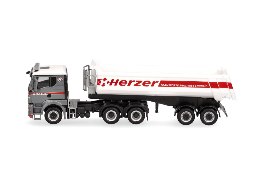 Model třínápravového tahače MAN TGS TN s dvounápravovým vanovým sklápěcím návěsem v barvách rakouské dopravní společnosti Herzer