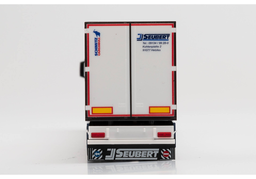 Model dvounápravového tahače MAN TGX GX s třínápravovým chlaďírenským návěsem v provedení německé dopravní společnosti Johann Seubert z Hetzlesu.