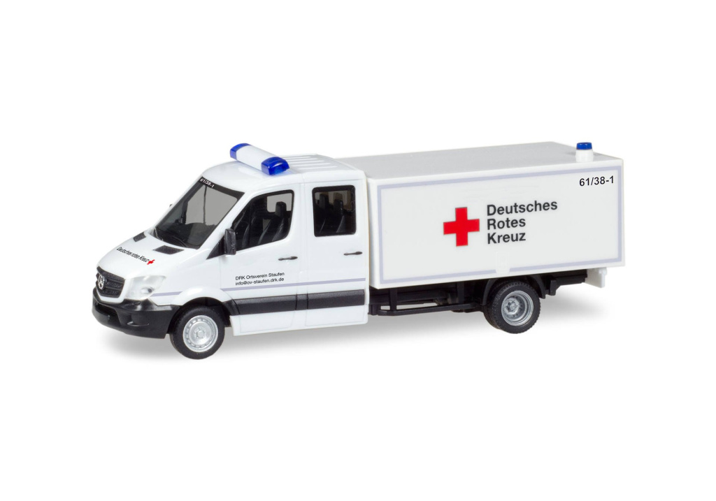 Model dodávky Mercedes-Benz Sprinter s dvojitou kabinou a skříňovou nástavbou.MB je ve skutečnosti v tomto provedení používán v Kreuzu ve Staufenu, jako vozidlo lékařské služby při zvládání katastrof.