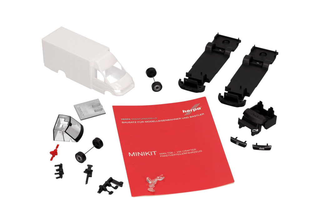 S touto stavebnicí si můžete sestavit vozidlo pro doručování balíků, ať už jako MAN TGE nebo VW Crafter. Díky zacvakávací konstrukci Herpa lze MiniKity sestavit v několika krocích bez lepidla (návod k montáži je součástí balení).