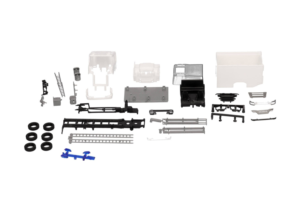 Stavebnice hasičského automobilu Scania CrewCab. Stavebnice obsahuje díly na stavbu dvou kompletních hasičských automobilů v bílé barvě.