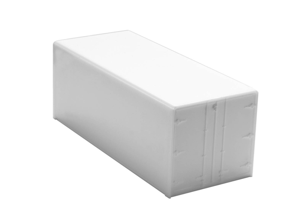 Uzavřená pevná nástavba 5,6m bez podlahy určená pro nákladní automobily o nosnosti 7,5t.Znázorněno zadní zavírání.Barva nástavby bílá bez popisů.