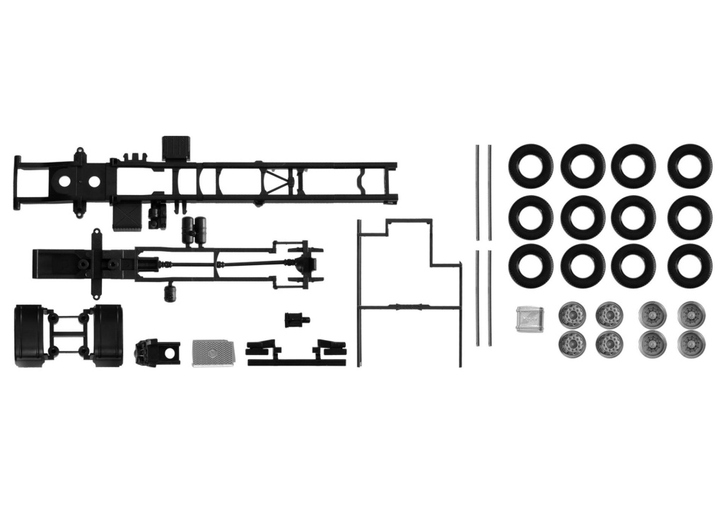 Podvozek pro model dvounápravového nákladního Mercedesu-Benz Econic pro skříňovou nástavbu.J