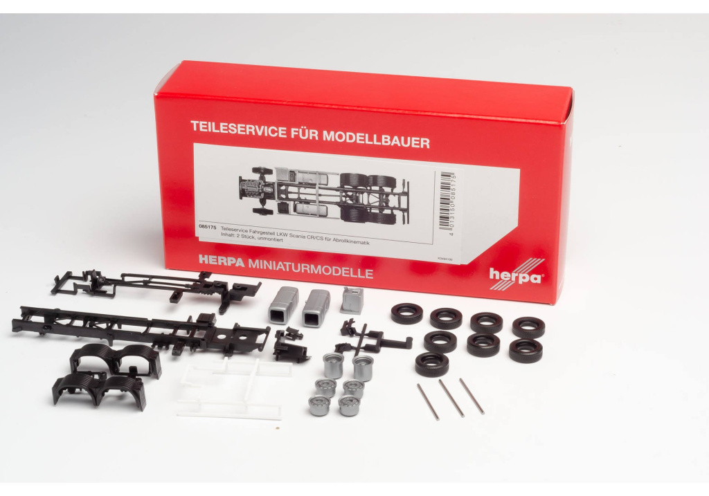 Stavebnice třínápravového podvozku pro nákladní Scanii CR/CS,s možností použití kinematiky na natahování výměnných kontejnerů.