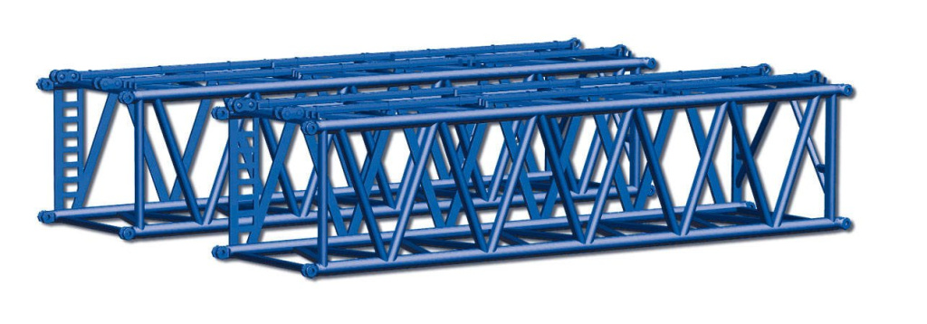 Dva kusy velkých příhradových nosníků se spojovacím materiálem pro jeřáb Liebherr LR 1600/2 .Nosník má obdélníkový průřez cca 35x30mm v délce cca 140mm. Návod na sestavení je součástí balení.