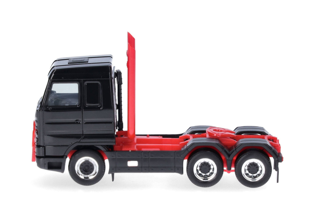 Model černého tahače Scania Streamline s třínápravovým podvozkem a pohonem6x4, plný chromovaných doplňků, nahrazuje svého červeného předchůdce. Model je vybaven ochrannými rámy, vysokými trubkami, střešním nosičem a dvoudílnými chromovanými sadami kol.