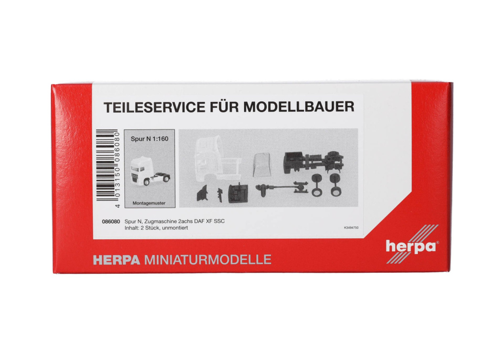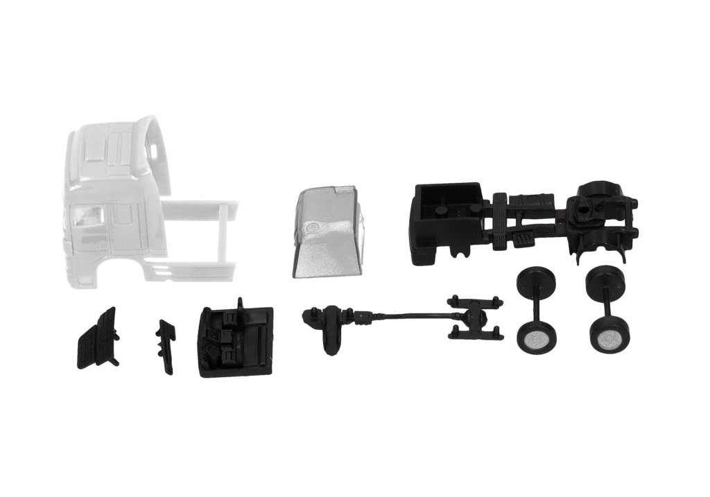 Stavebnice dvounápravového tahače DAF 95 XF SSC v bílé barvě s černým podvozkem.