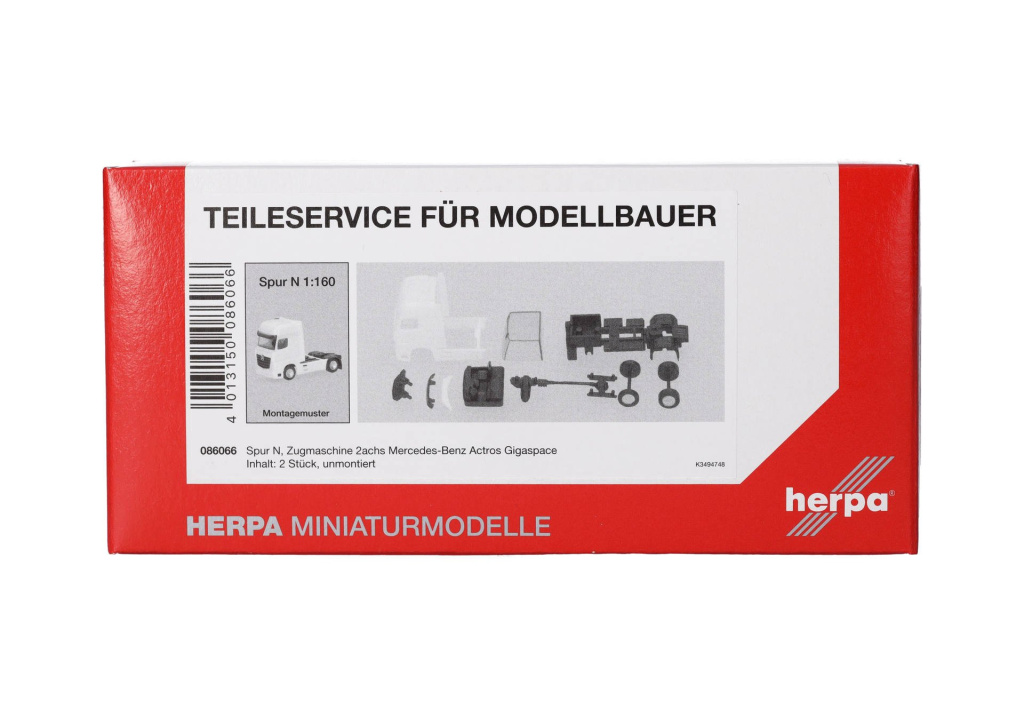 Stavebnice dvounápravového tahače Mercedes-Benz Actros Gigaspace v bílé barvě s černým podvozkem.
