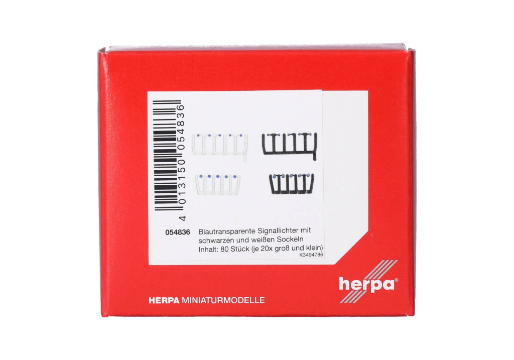 Sada kulatých majáků v průhledné modré barvě. 40 kusů malých a 40 kusů velkých majáků  světel lze kombinovat s černými a bílými podstavci.