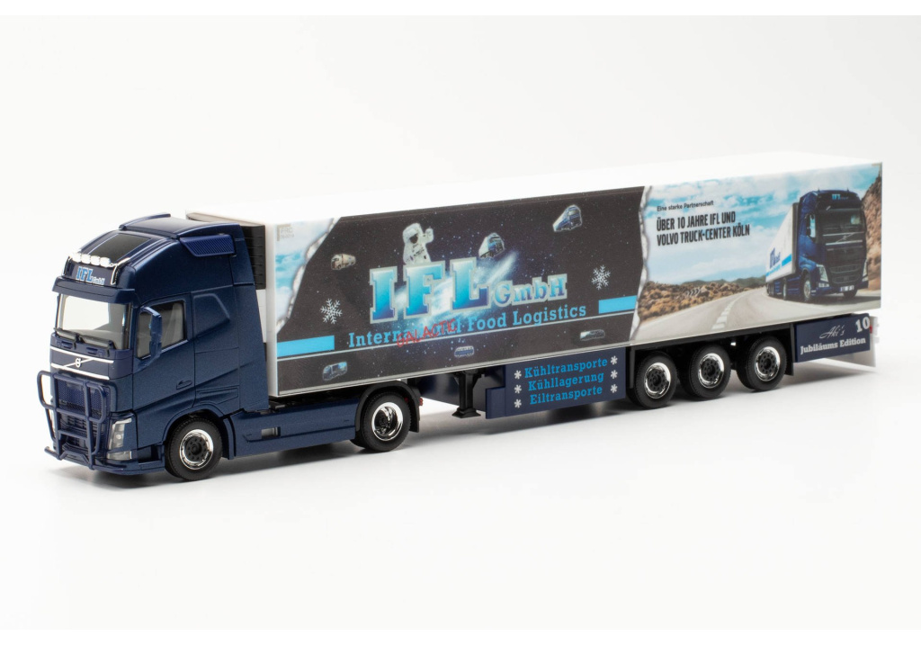 Model dvounápravového tahače Volvo FH GL XL s třínápravovým chladírenským návěsem kolínské dopravní společnosti IFL, která se zabývá přepravou potravin po celém Německu.