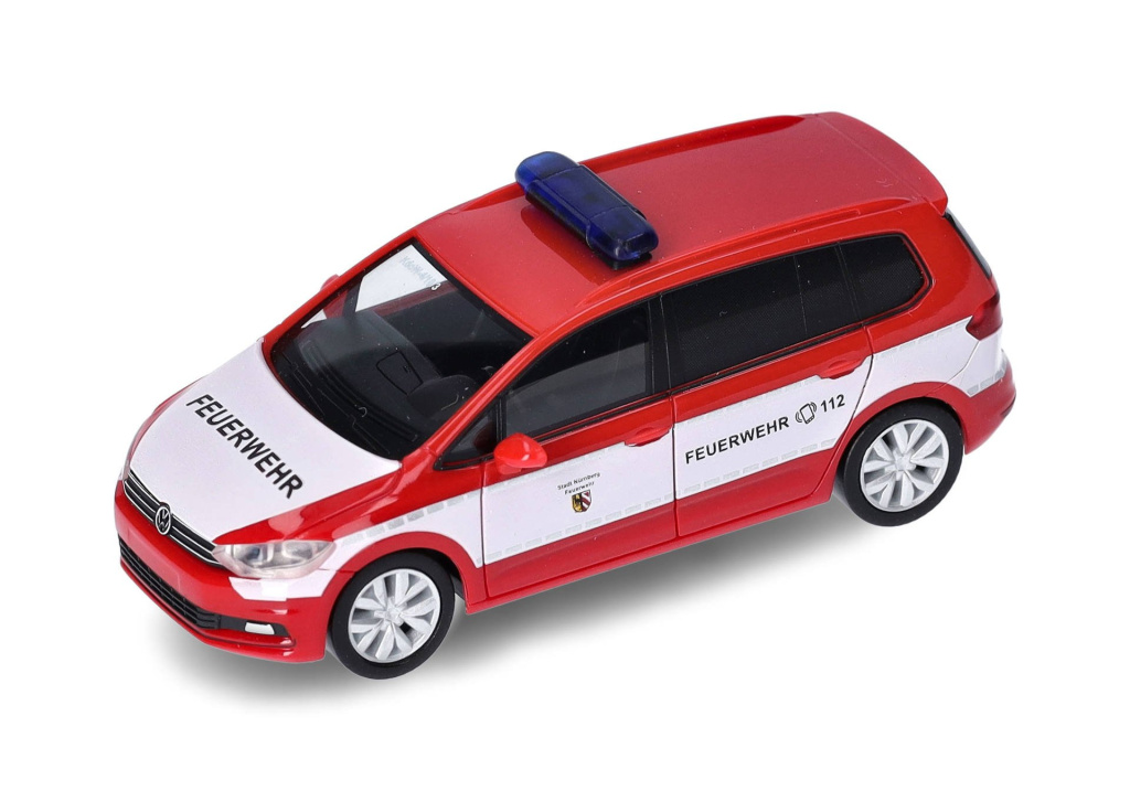 Model osobního automobilu VW Touran v provedení hasičského záchranného sboru v Norimberku,kde je ve skutečnosti využíváno jako velitelské vozidlo.