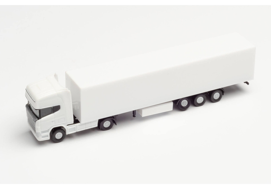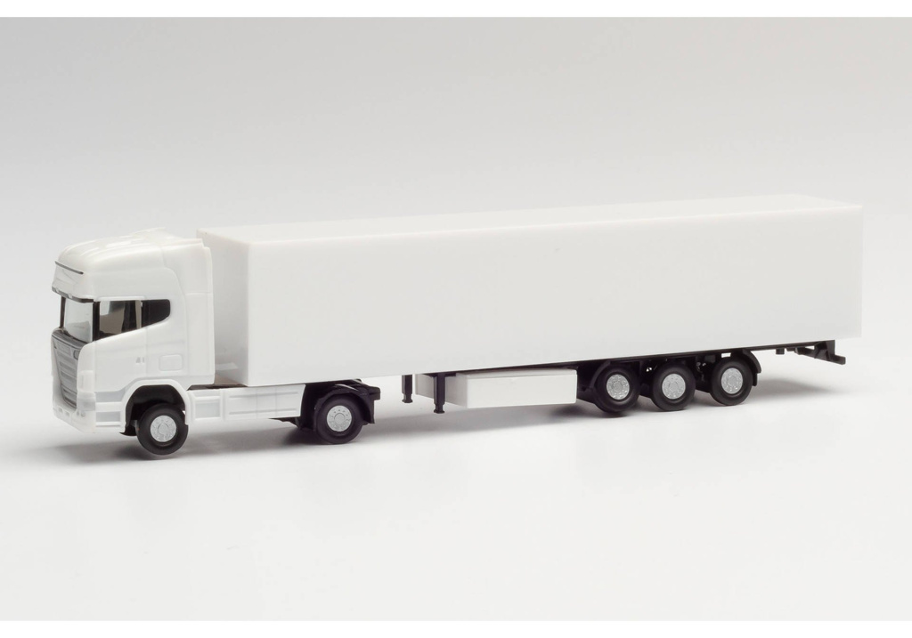 MiniKit-Stavebnice dvounápravového tahače Scania R TL s třínápravovým skříňovým návěsem.