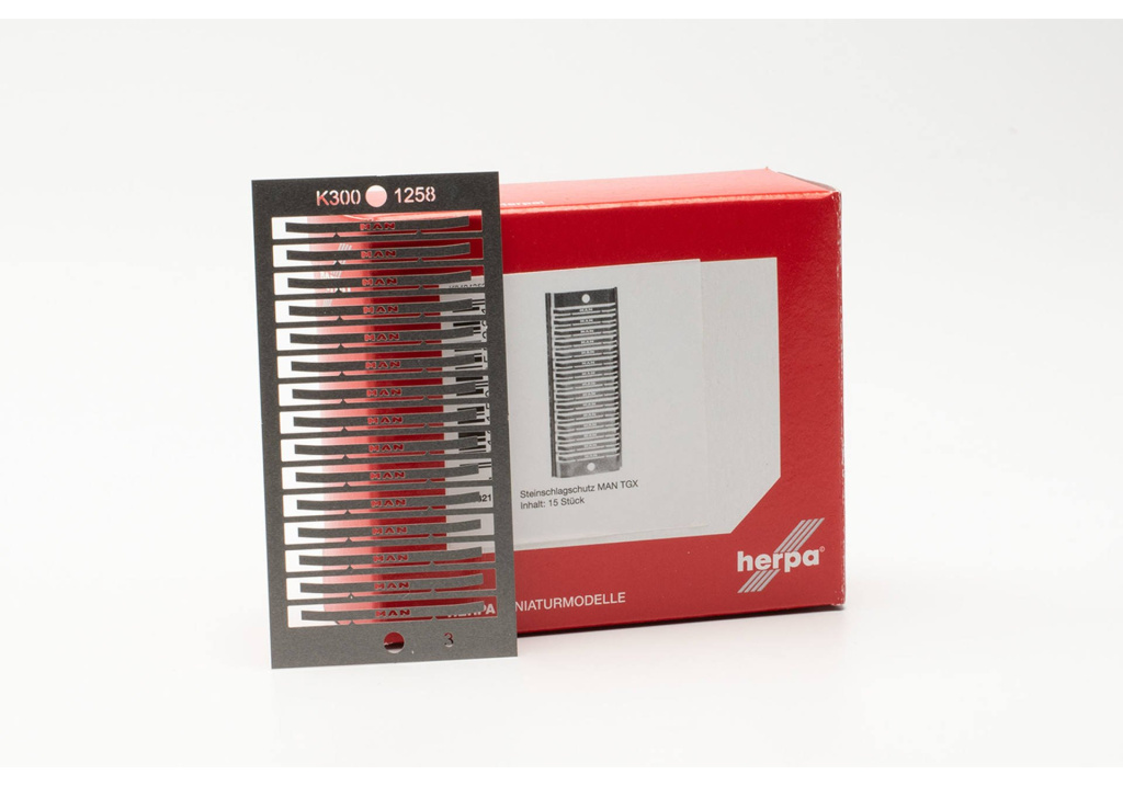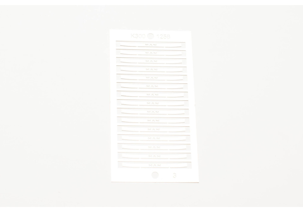 Nová designová mřížka čelního skla nad stěrače pro tahače a LKW Man. Stříbrný leptaný mosazný díl s nápisem MAN,konce jsou plné,bez děrovaní. Tato mřížka, se přizpůsobí příslušnému zakřivení čelního skla a poté se jednoduše vloží za A-sloupek kabiny příslušného tahače.Každá sada obsahuje 15 stříbrných leptaných mosazných dílů.Uvedená cena je za celé balení.