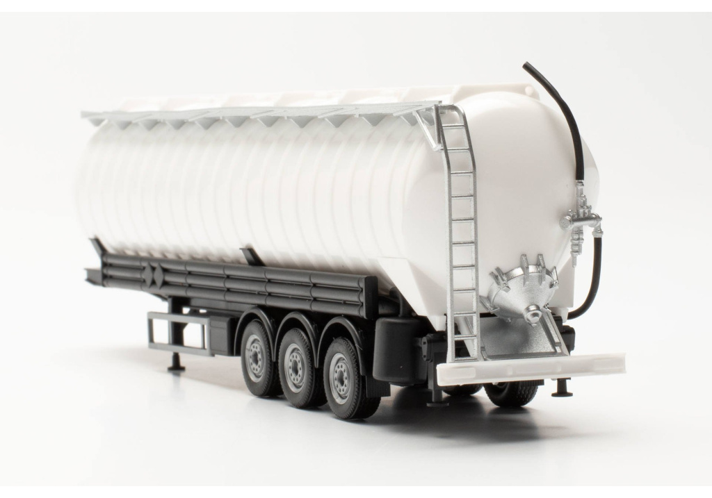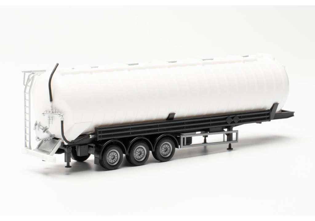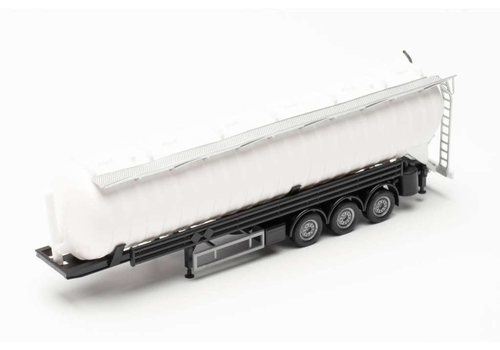 Model třínápravového cisternového návěsu FFB s výztuhami na těle cisterny,které umožňují použít vlastní sání.Návěs je v neutrálním bílém provedení s černým podvozkem.