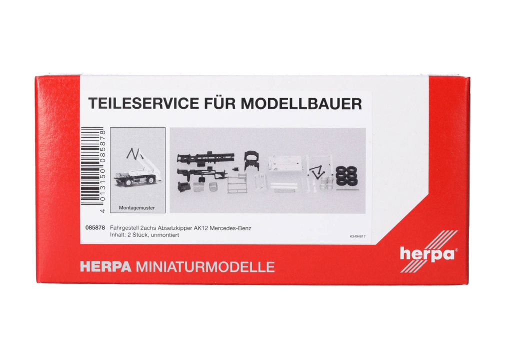 Stavebnice podvozku pro dvounápravový Mercedes-Benz s nástavbou nakladače AK12-bez kabiny.